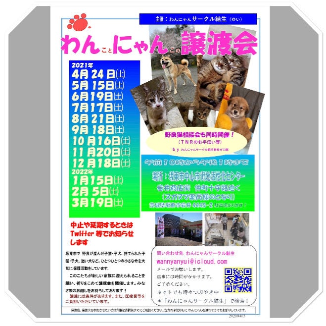 また、2時から「保護猫カフェさくら」のインスタグラムでオンライン譲渡会を配信する予定です。