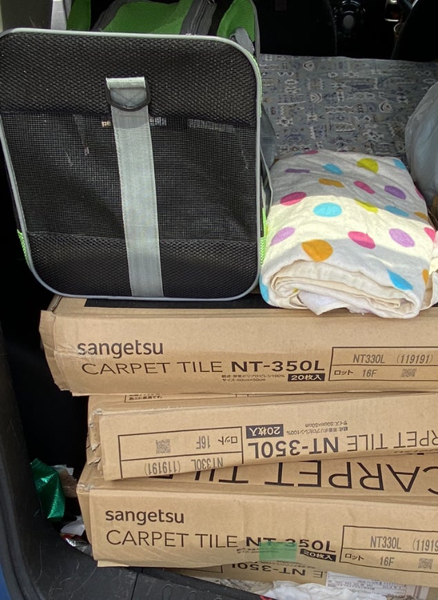 手術に連れて行くときはmooくんのキャリーは助手席でした。