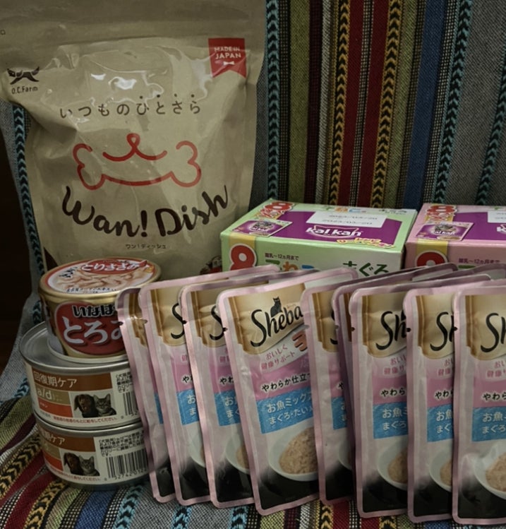 Sくん母子様からこねこちゃんとわんちゃんのフードをご支援いただきました。