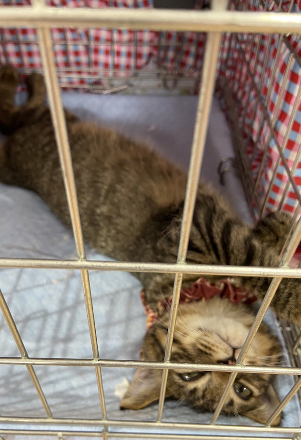 譲渡会でも、へそ天でくつろぐ大物ぶり