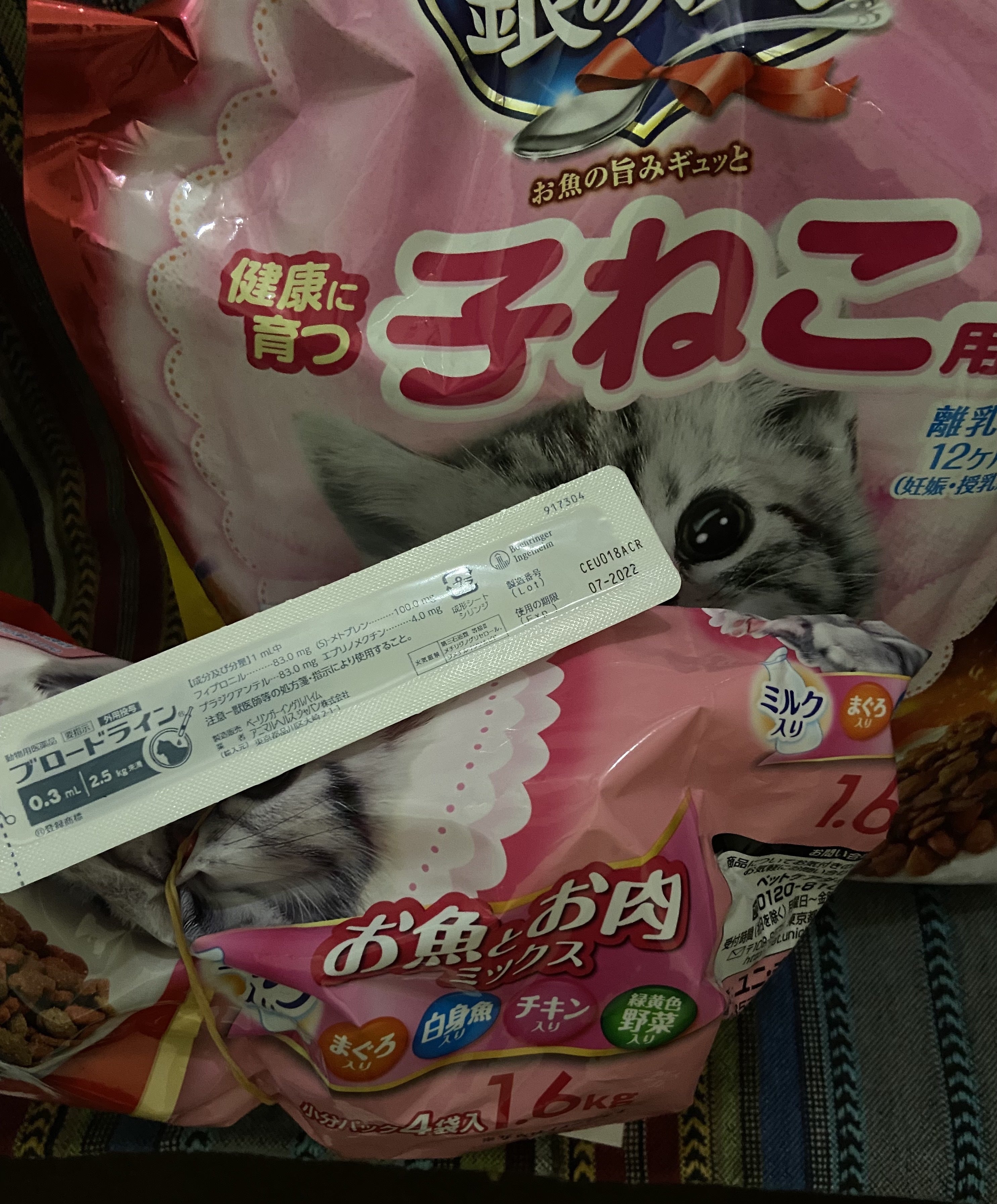 N様から、子猫ちゃんのフードと、ノミダニ薬ご支援いただきました。