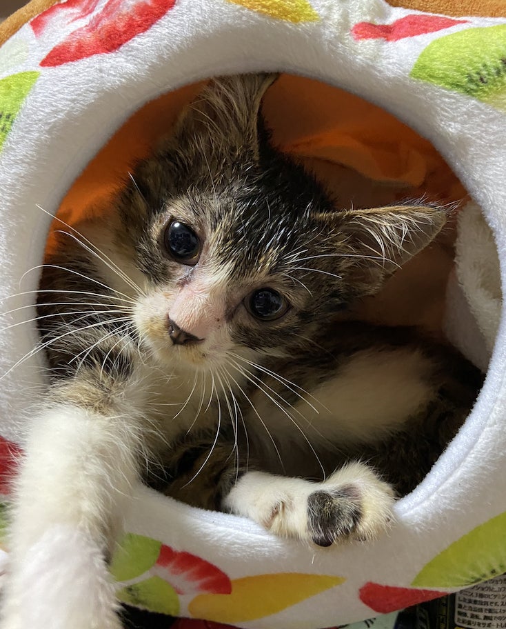 冒頭の写真は、キジ白のおんなのこ、しゅなちゃんです。