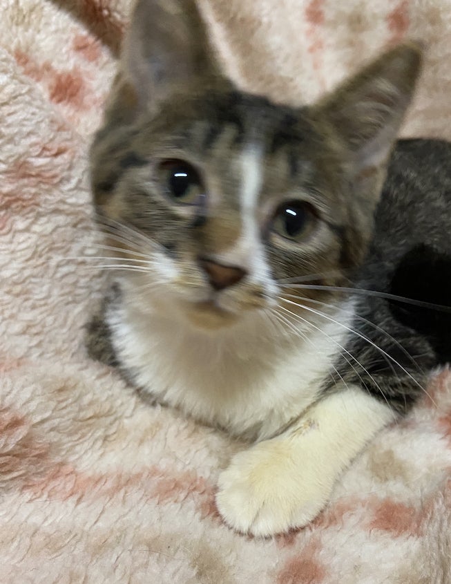 冒頭の写真は、キジ白のおとこのこの しゅろくんです。