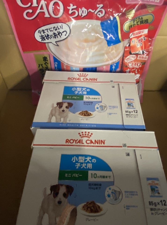 T様から、ドッグフード、猫さんチュールご支援いただきました。