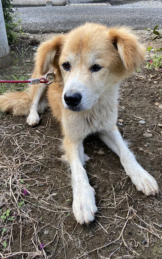 現場へ行ってみますと、少し小さめの中型のオスのわんちゃんが
