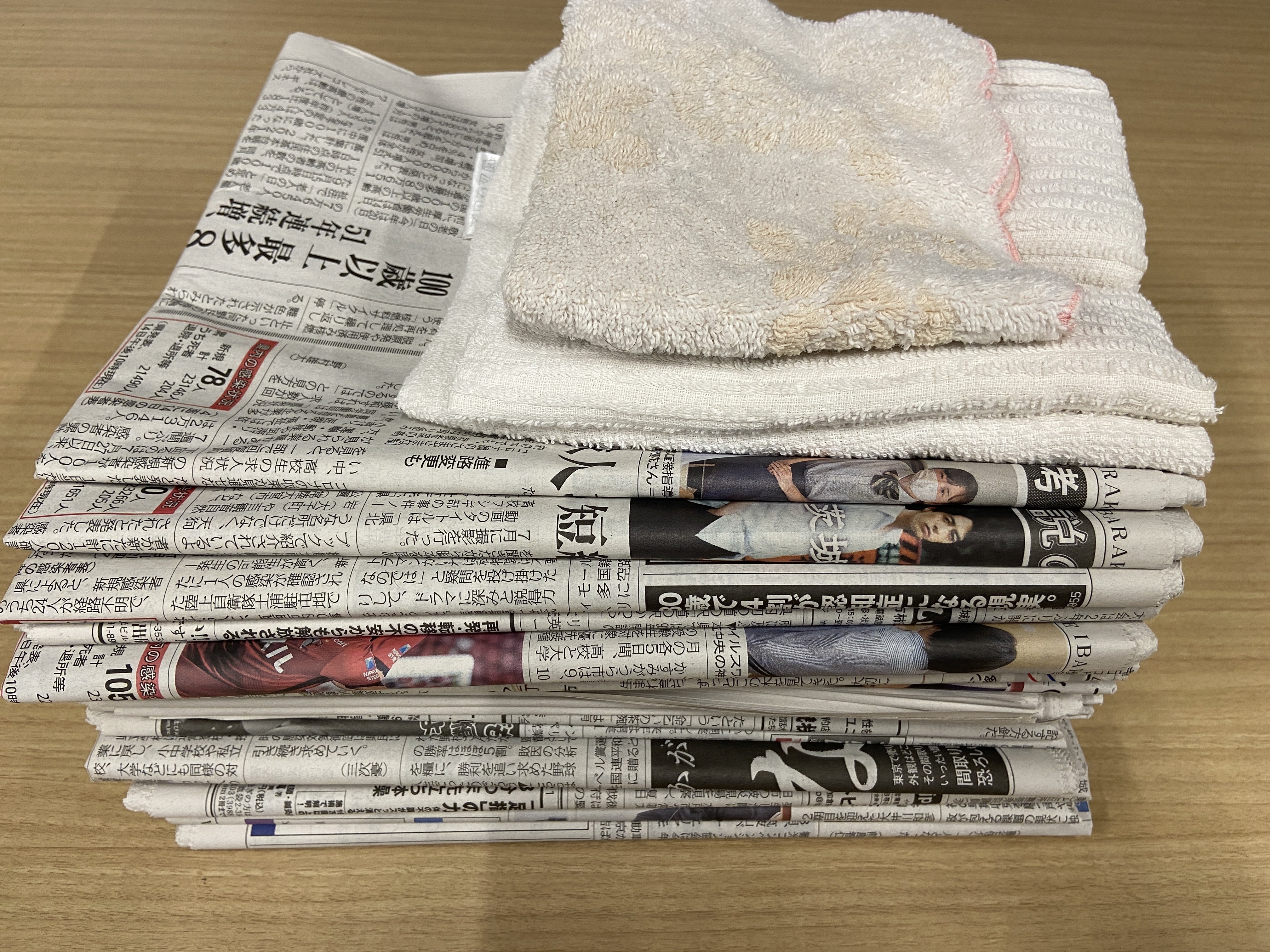 M様からタオルと新聞紙ご支援いただきました。