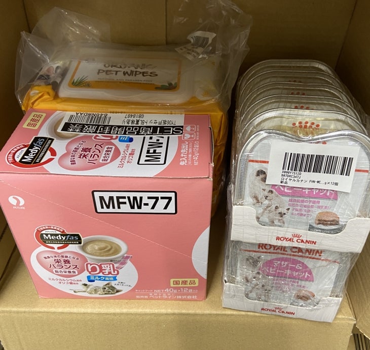 W様から手袋、こねこ、こいぬフードご支援いただきました。