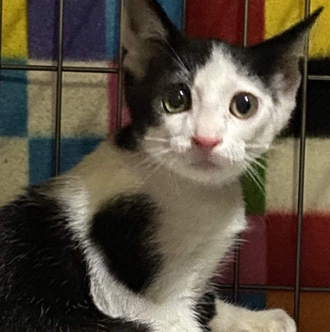 ウィルス検査で猫エイズ陽性とわかり、ケージでひとりぼっちだったもぅくん。