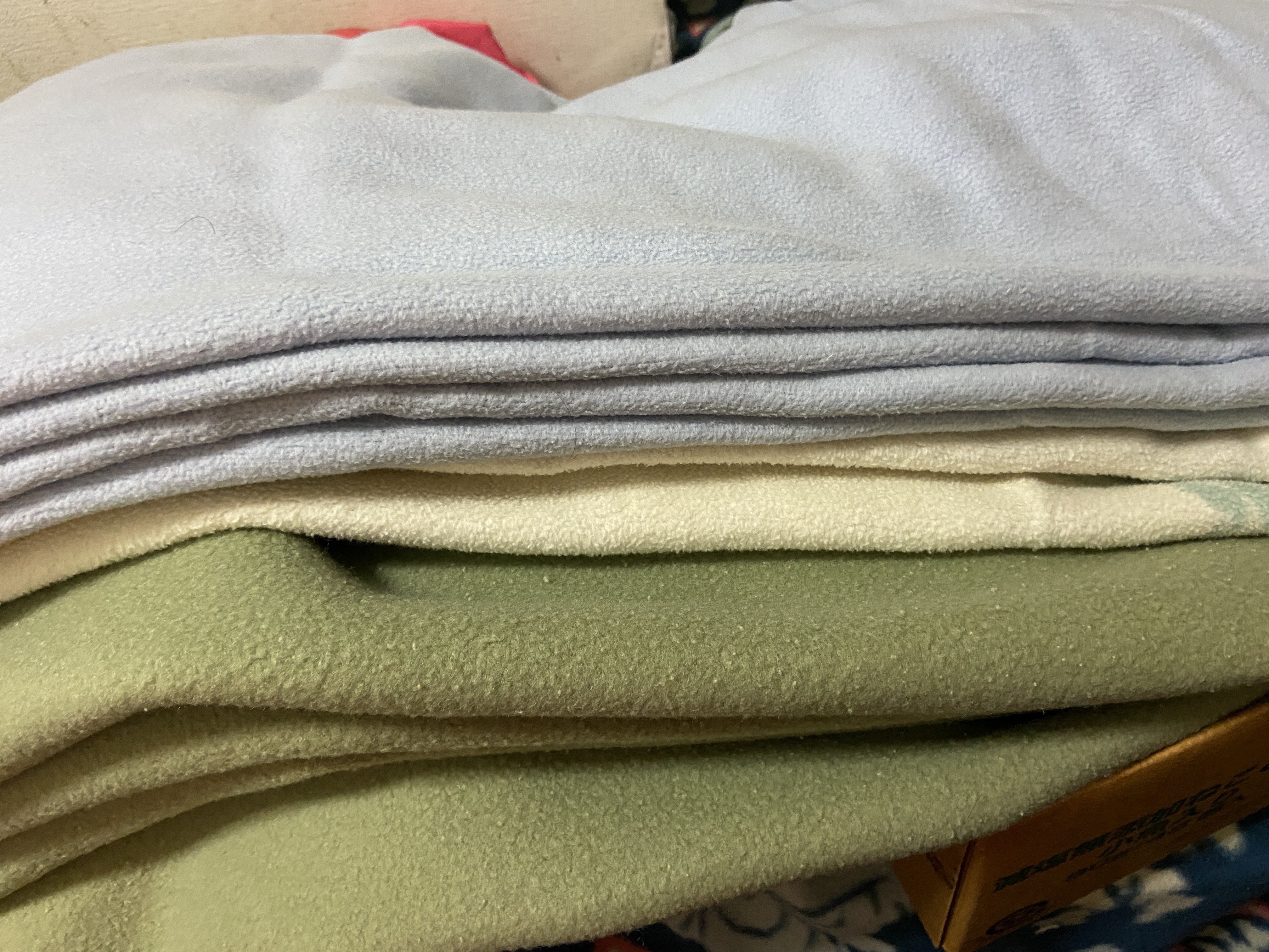 昨日カットした綿毛布は柔らかなパステルカラーのものでした。