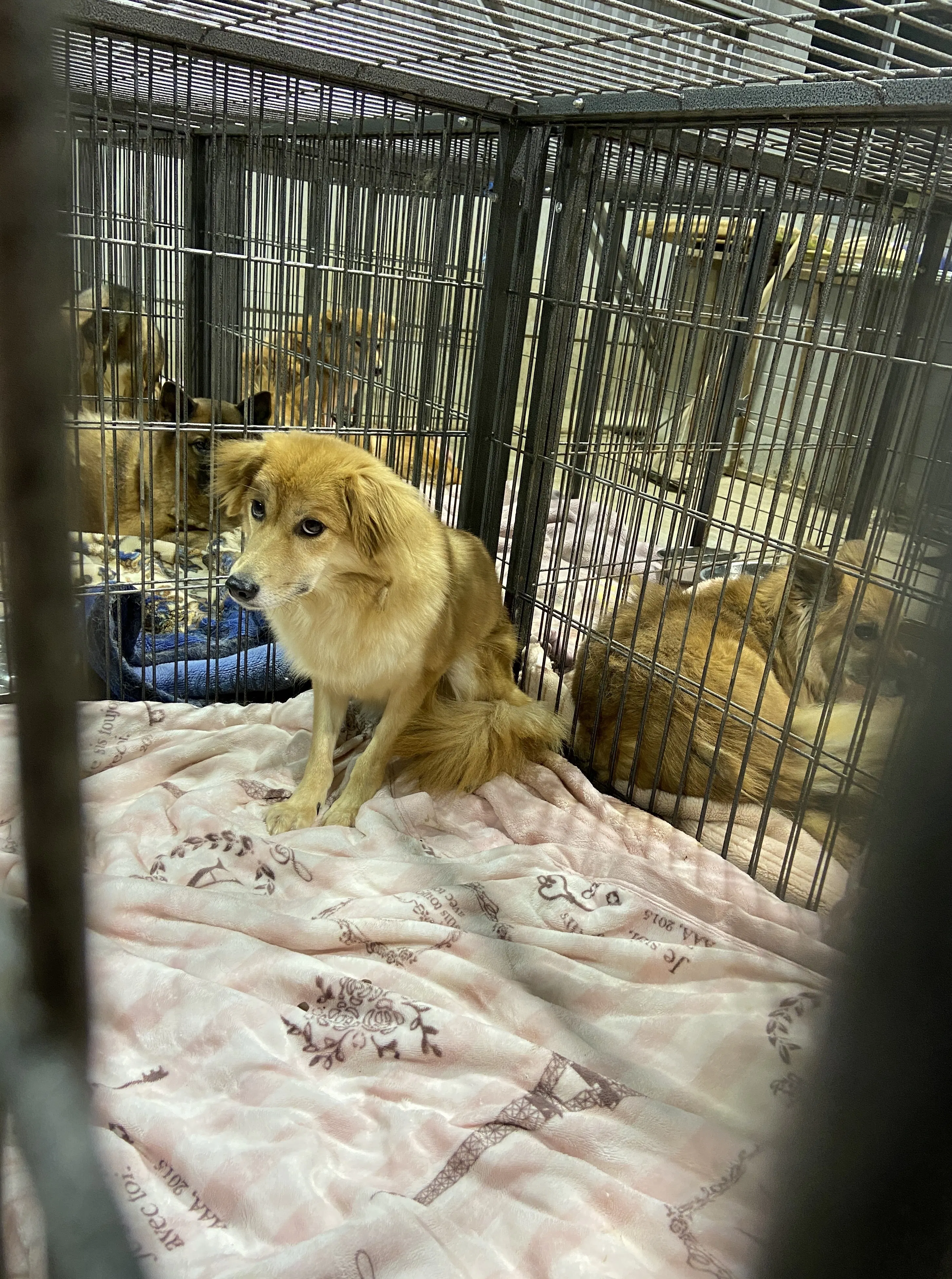 大型ケージは、新しく保護されたわんちゃん以外は