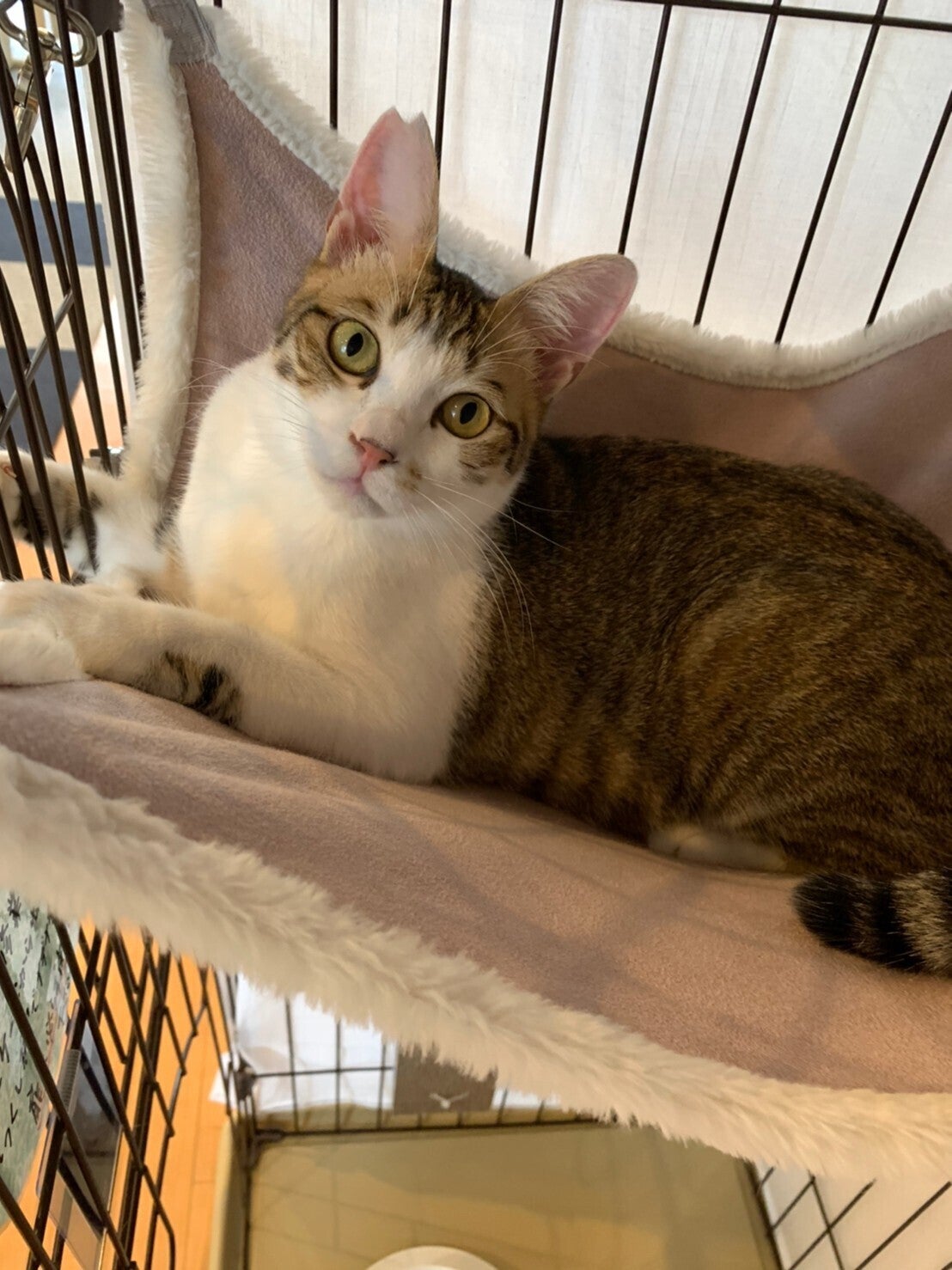 ぽぇんくん、なぜかにゃんもっく(猫さんのハンモック)をトイレと勘違いしはじめたのですが、カフェのスタッフの方々がいろいろと考えてくださり、再びトイレにできるようになってきました。