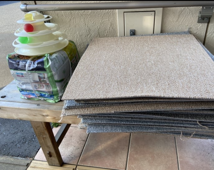 I様からカーペット、猫さんおもちゃ、新聞紙などご支援いただきました。