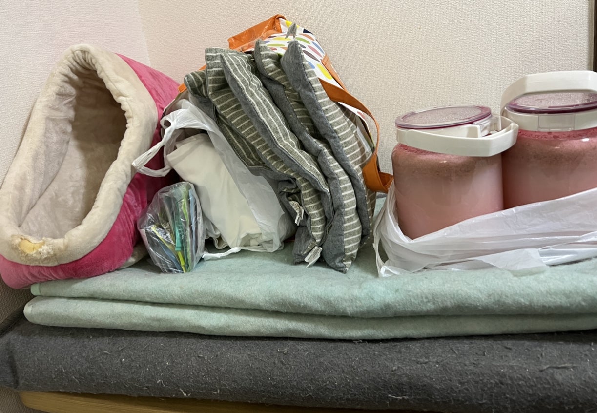 A様から手作り牛すじスープや猫さんベッド、カーペット等ご支援いただきました。