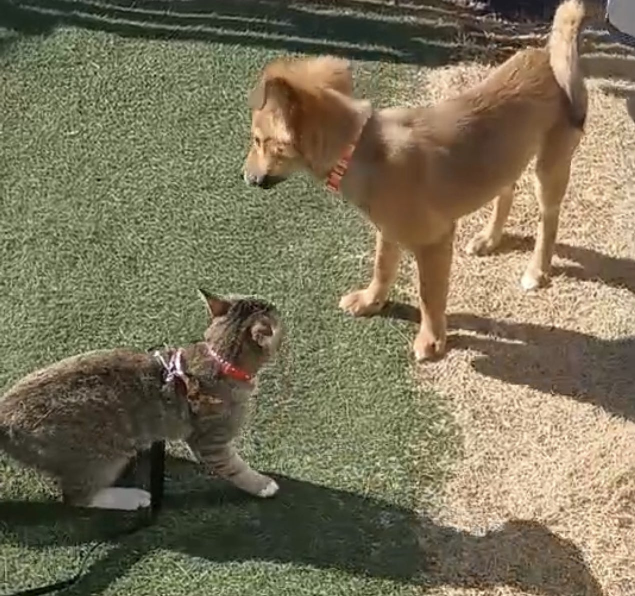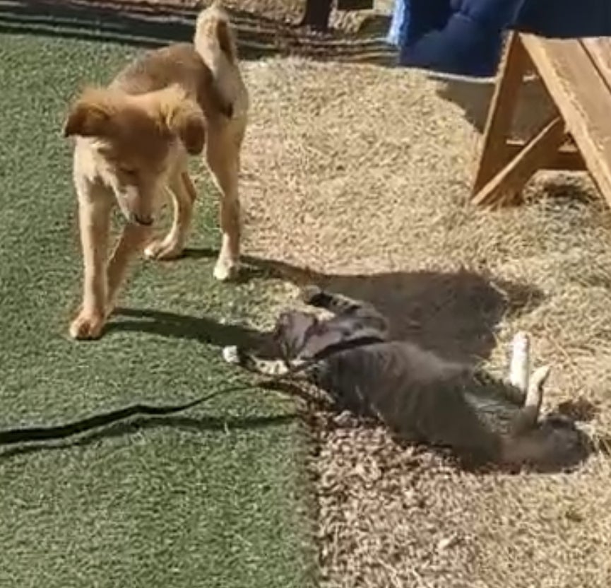 ここまで猫さんのリードで元気をもらってるわんちゃんは