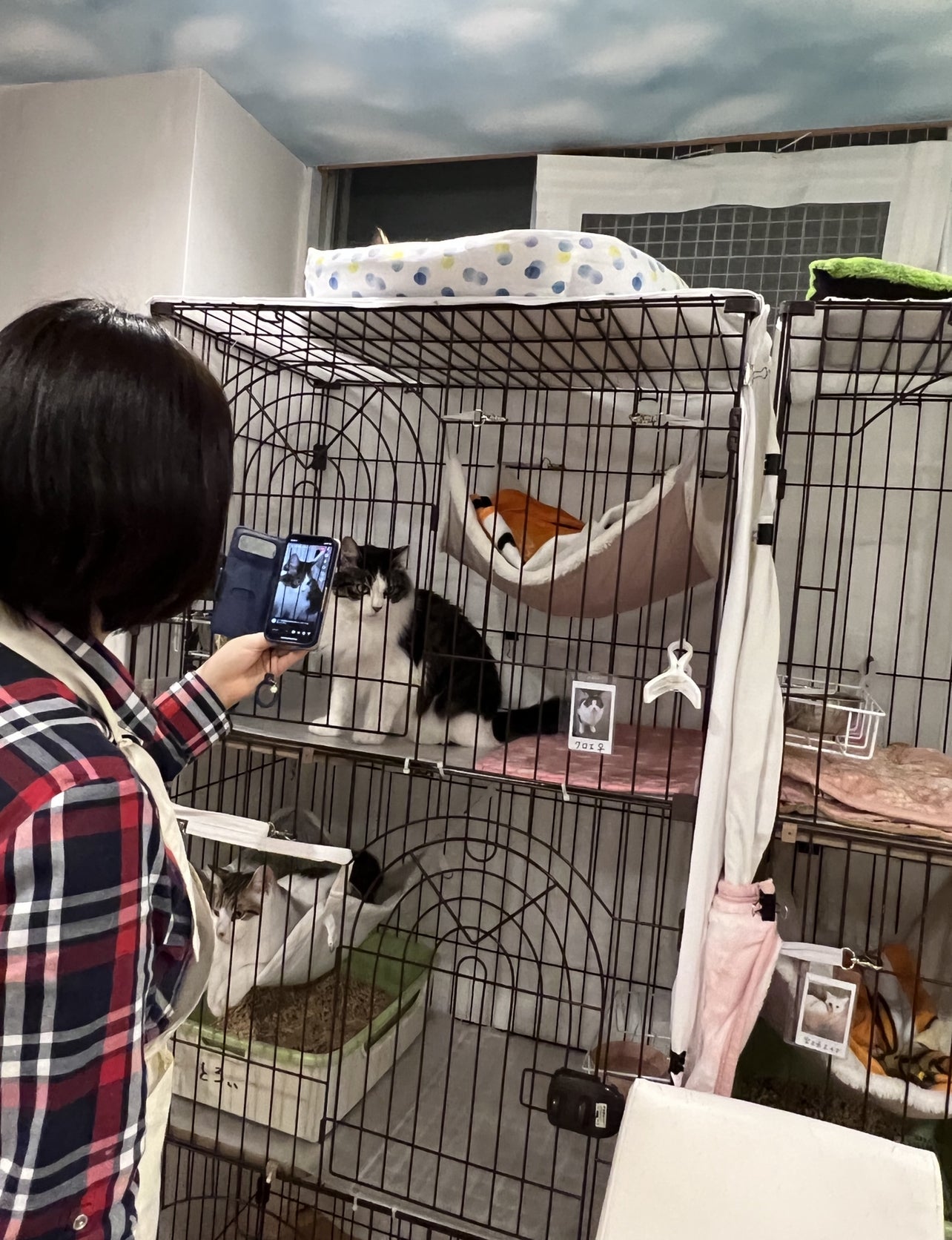 クロエちゃんは、おやすみ用のケージでゆっくりしていました。