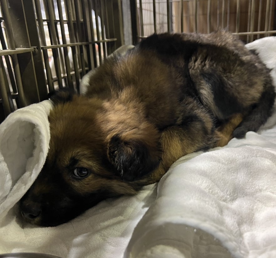 保護したばかりのこいぬちゃんは食べざかり。
