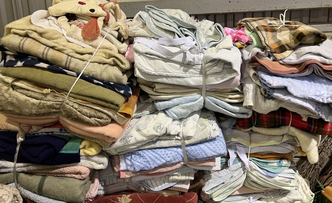 O様から毛布やベッドパッド等ご支援いただきました。