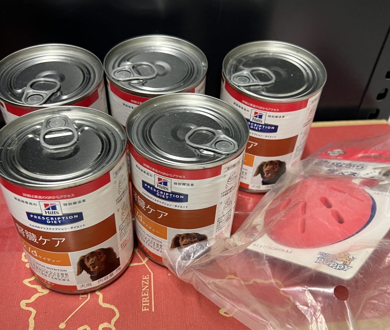 R様からわんちゃんのケアフードとおもちゃご支援いただきました。