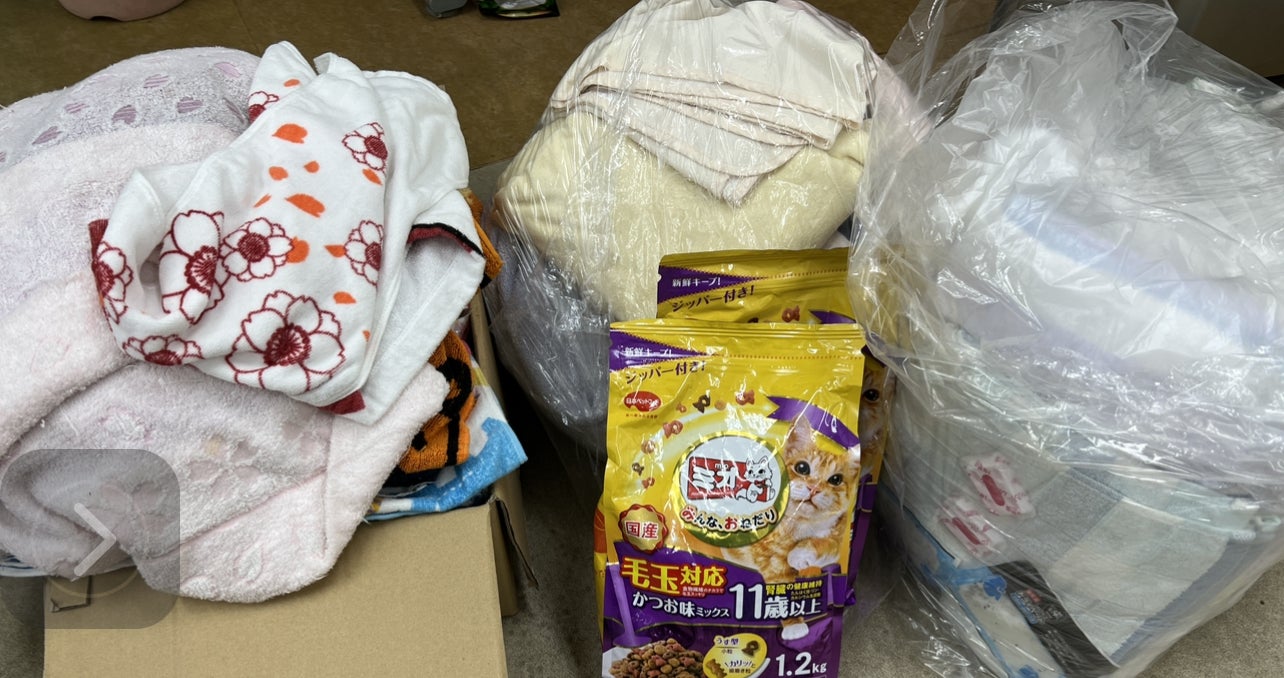タオル類やキャットフード等、たくさん感謝です。