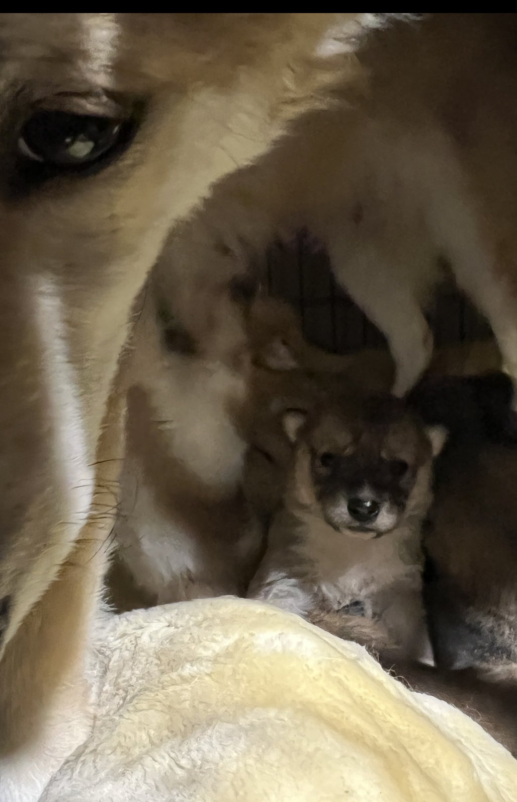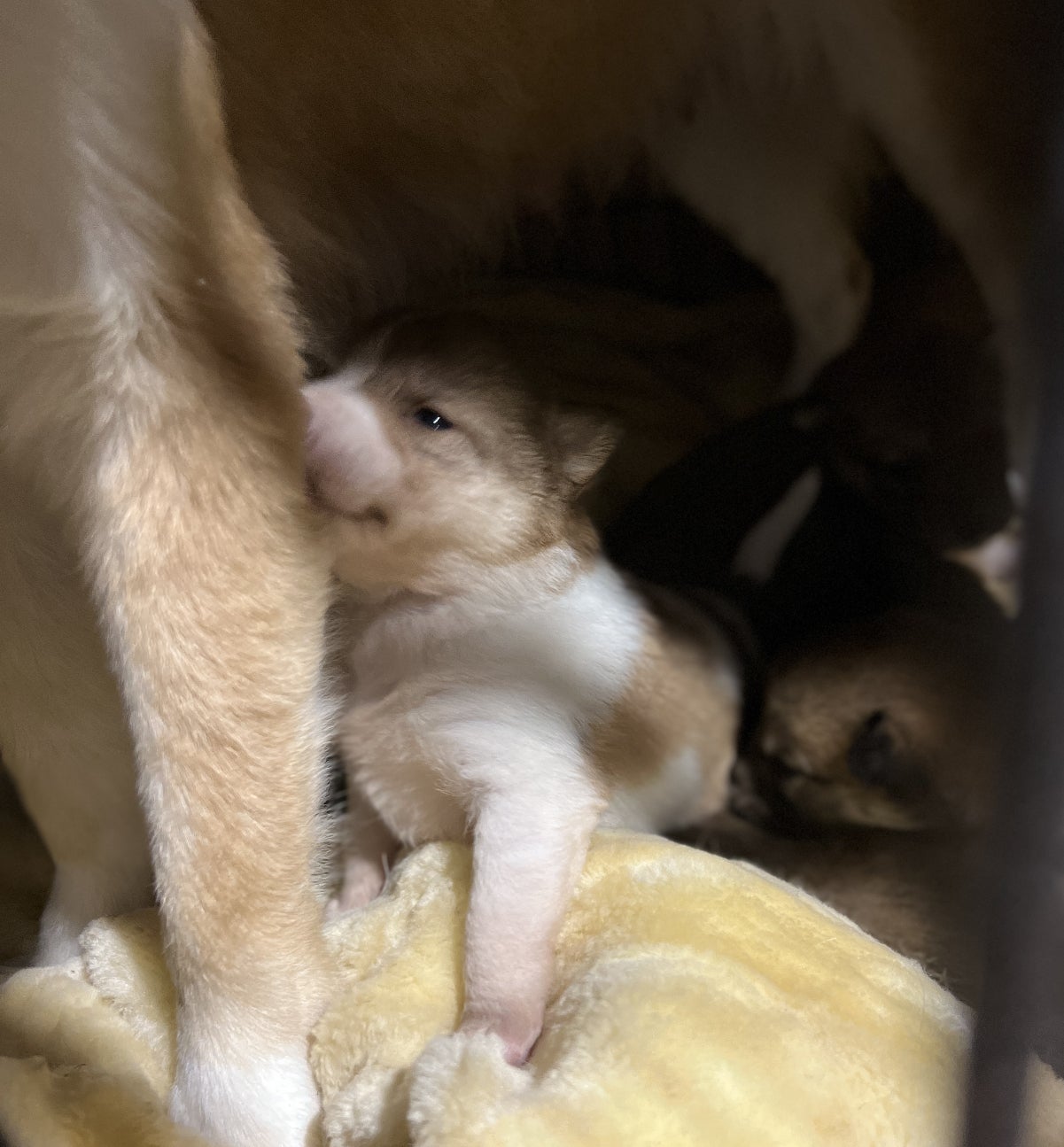 手前左に見えるのはママわんちゃんの前の左足です。