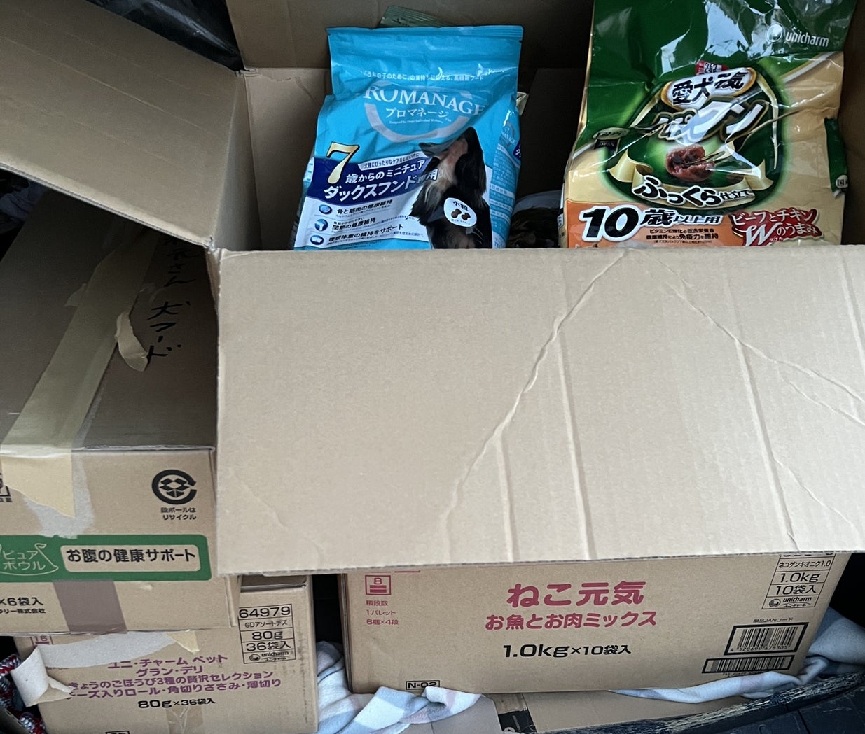 S様から回復サポート系フードとペットシーツご支援いただきました。