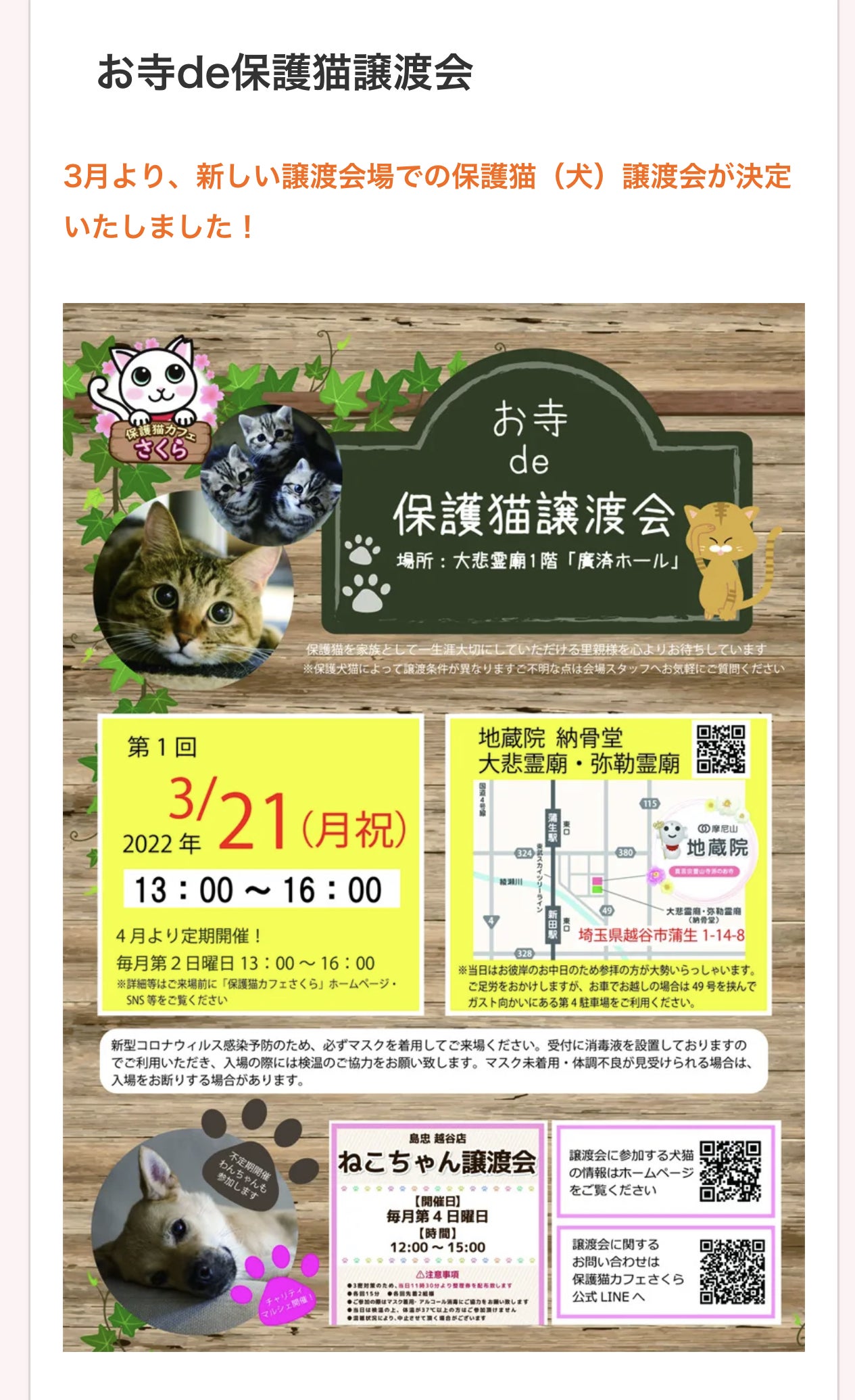 保護猫カフェさくらで、お寺さんで譲渡会を始めることになり、