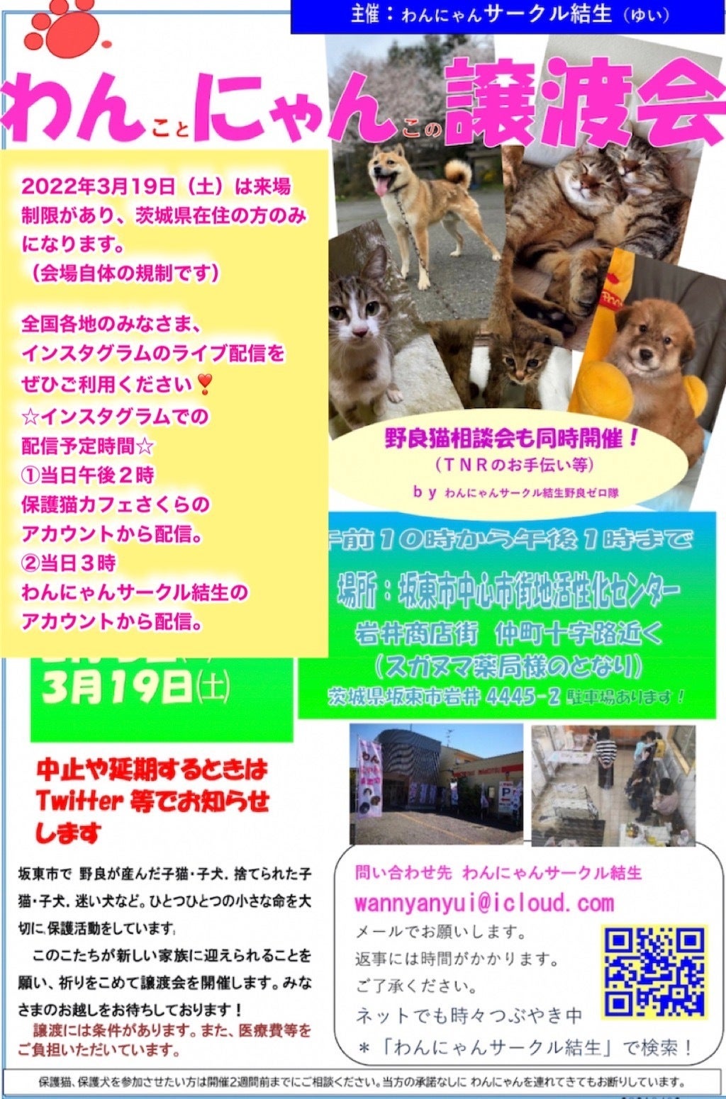 3月19日(土)は地元の毎月の定例譲渡会です。