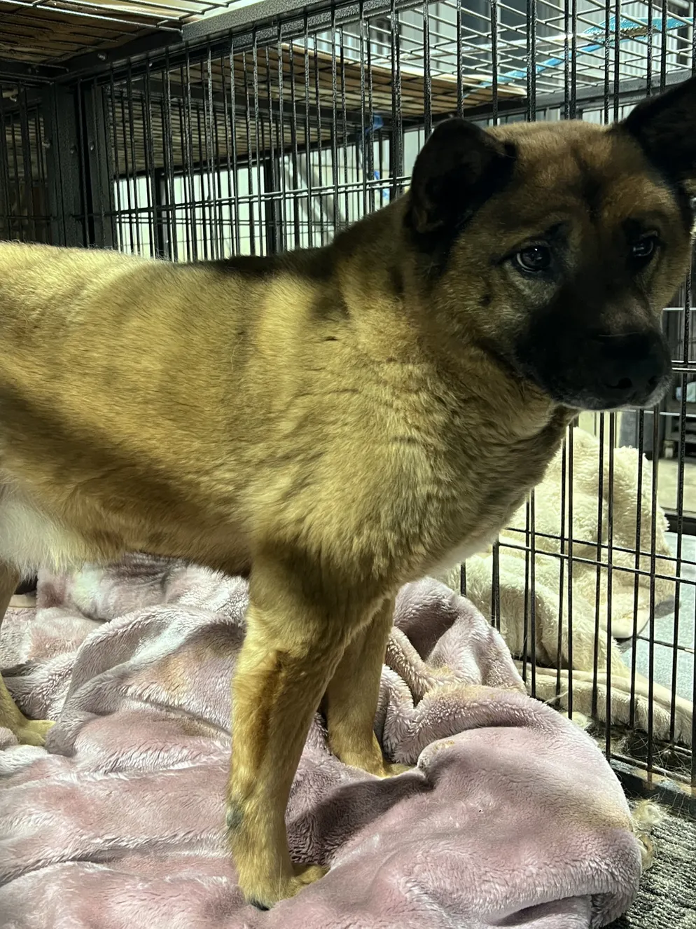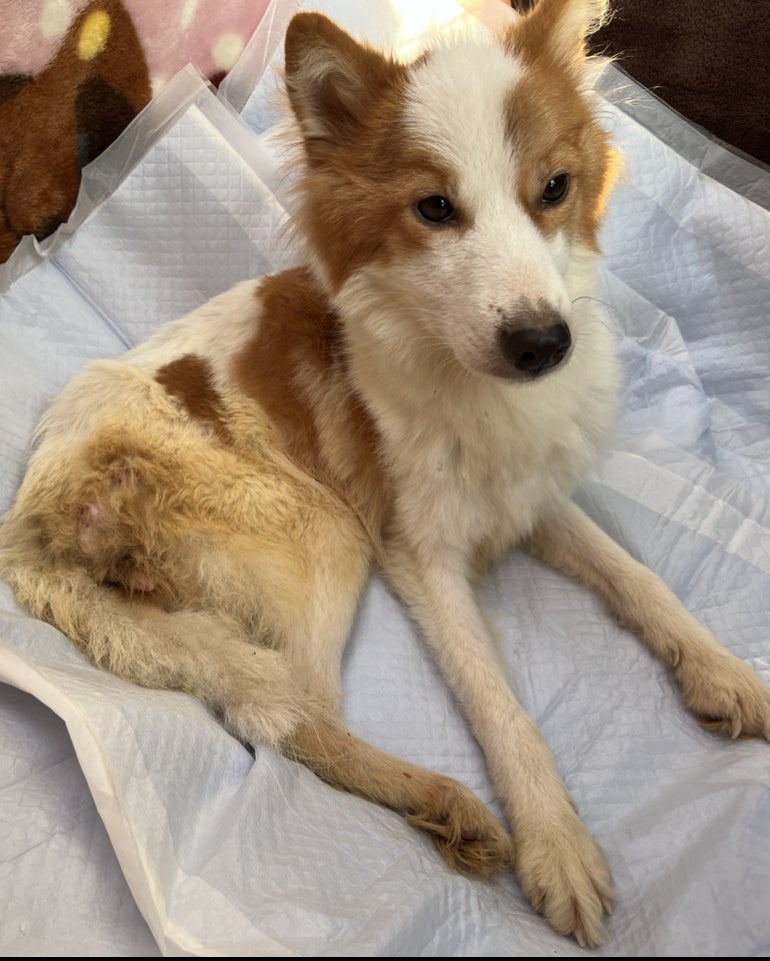 衰弱して足腰が立たない状態で道端にいたところを保護しためめちゃん。