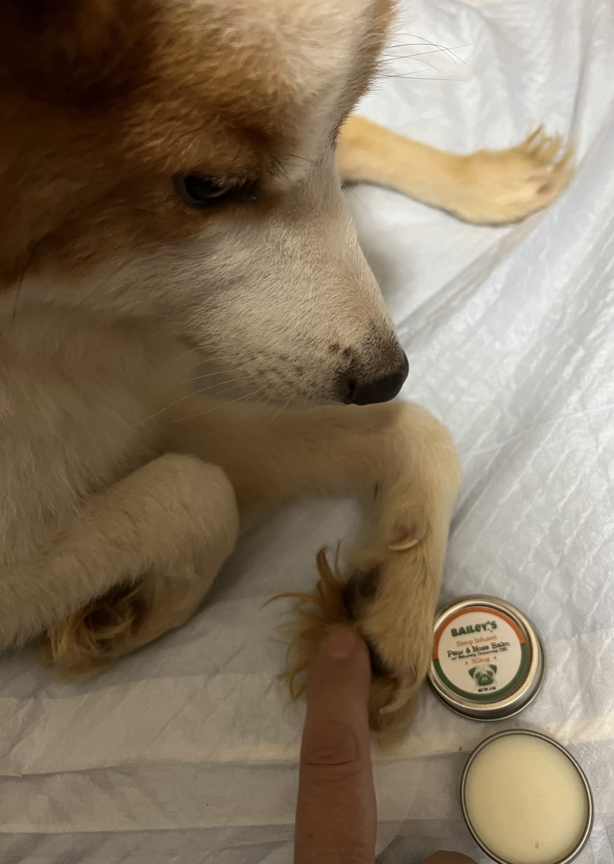 ご支援いただいた肉球クリームを少し塗ってみました。