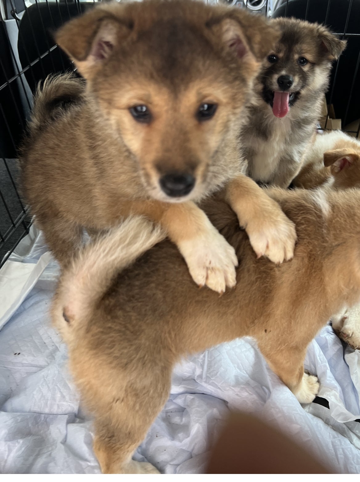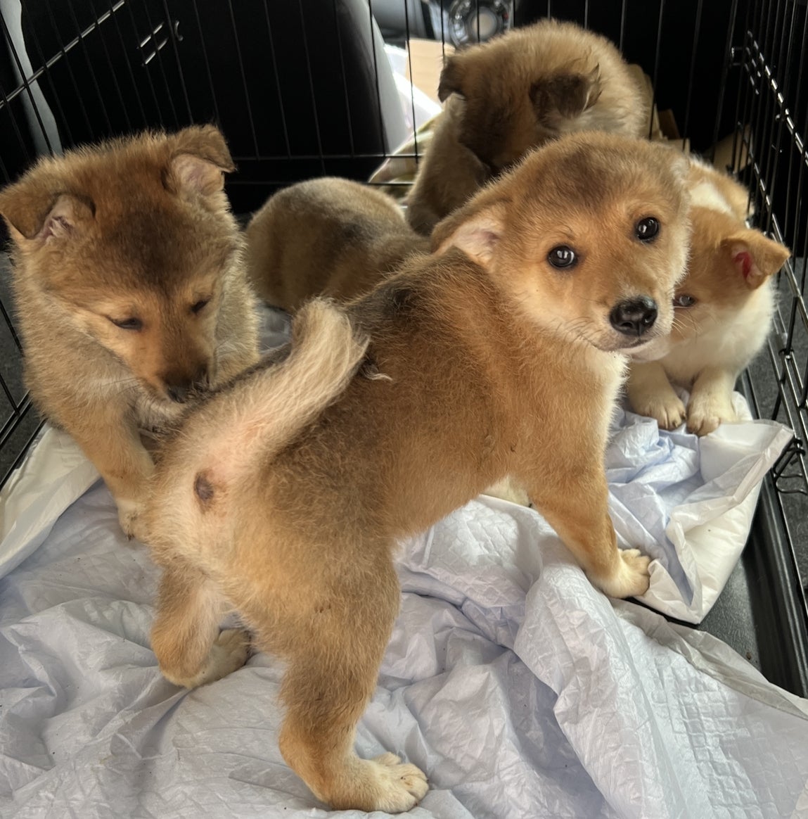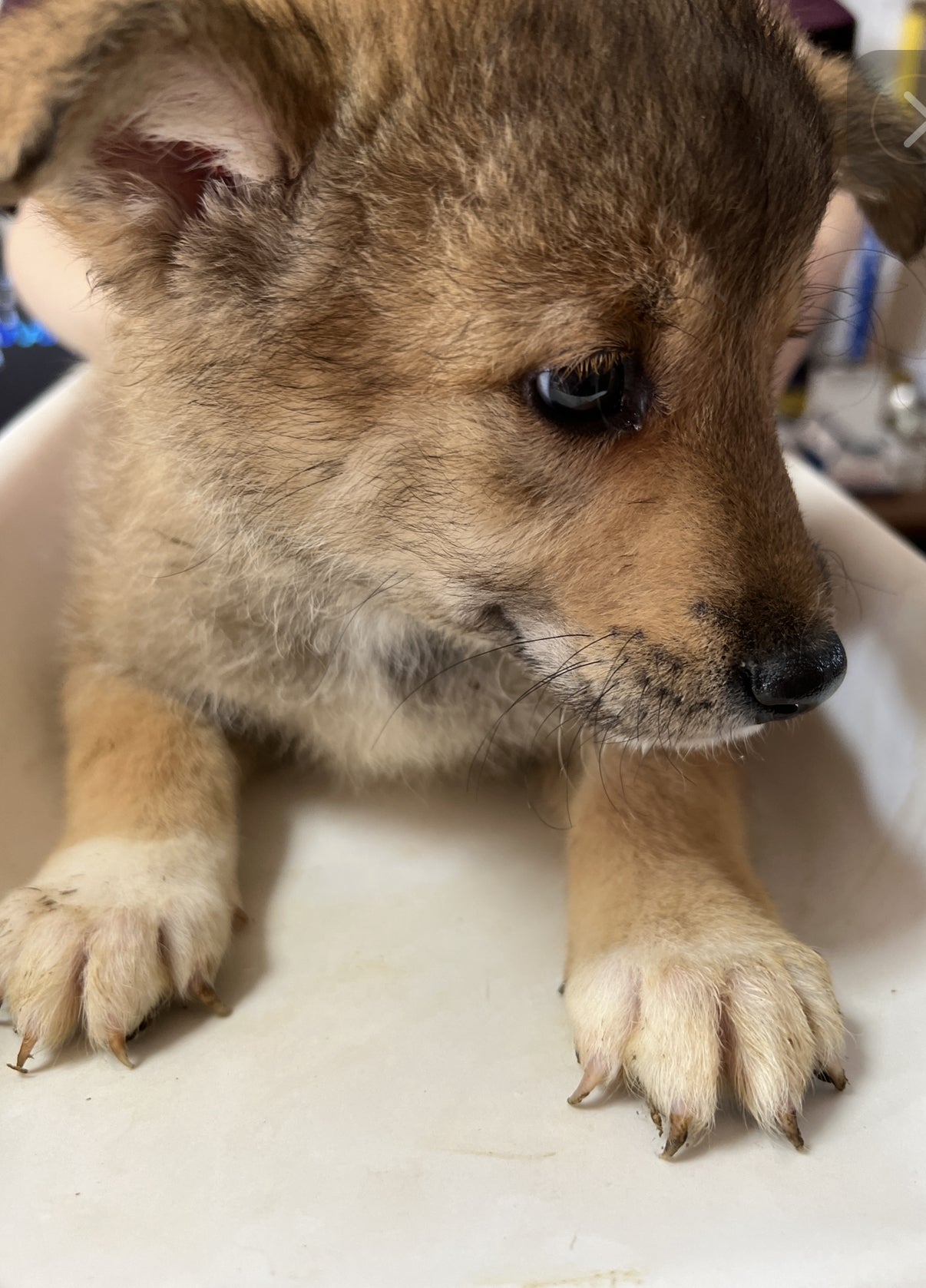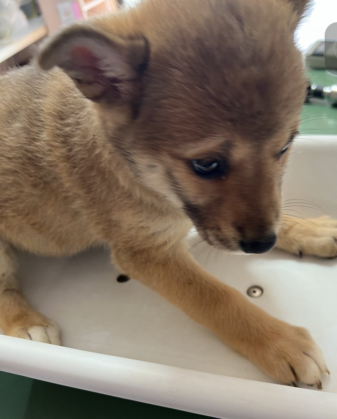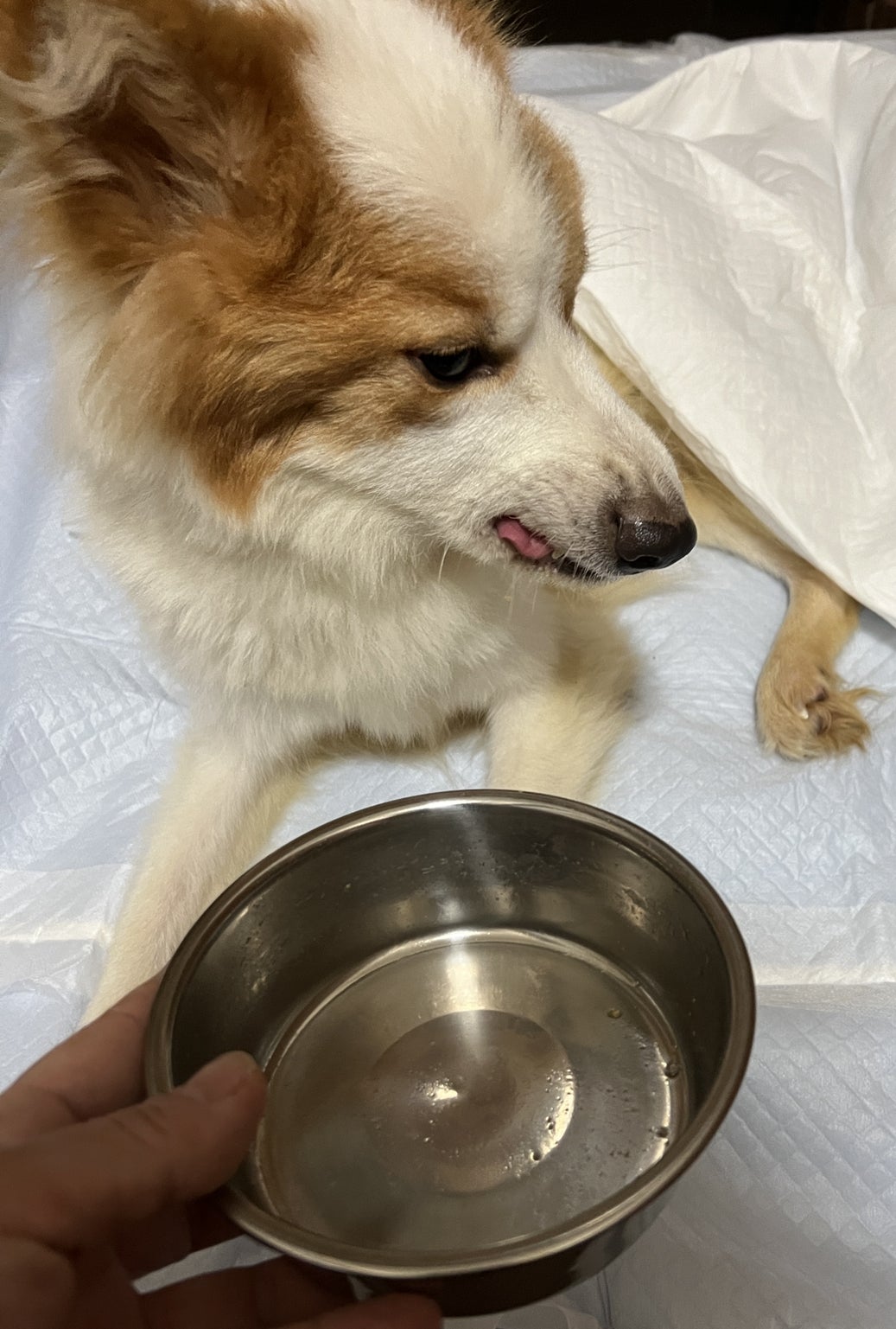 昨日ワクチン接種をしたこいぬちゃんたちも少しずつドライフードを混ぜてあたえています。