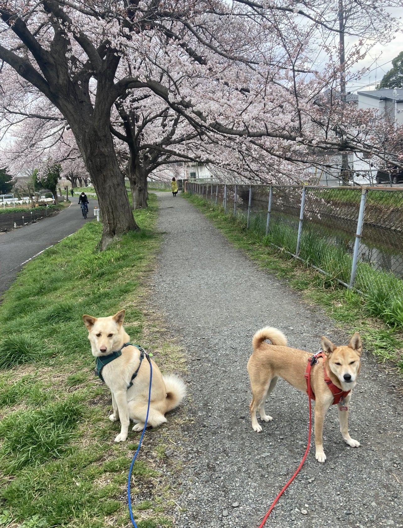 そんな中、卒業わんちゃんのご家族が桜の下のお散歩写真などを送ってくださいました。
