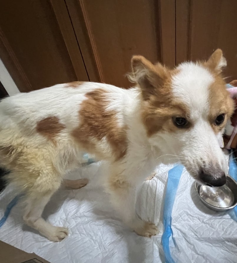 衰弱して足腰が立たない状態で道端にいたところを保護しためめちゃん。