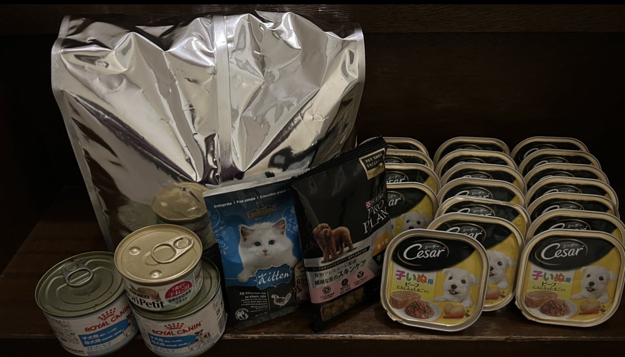 M様から猫さん子犬ちゃんフードご支援いただきました。