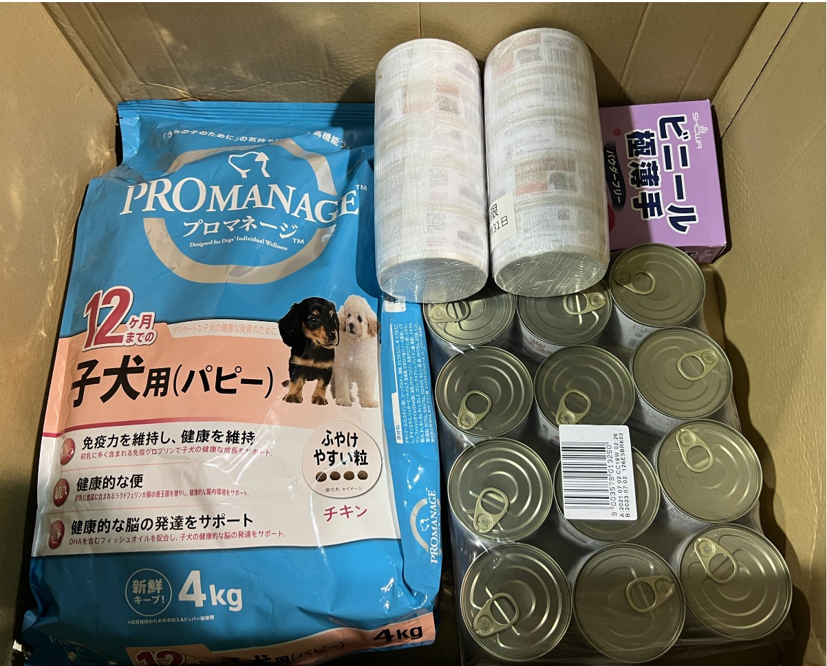 子犬ちゃんフード、回復期ケア、手袋などご支援いただきました。
