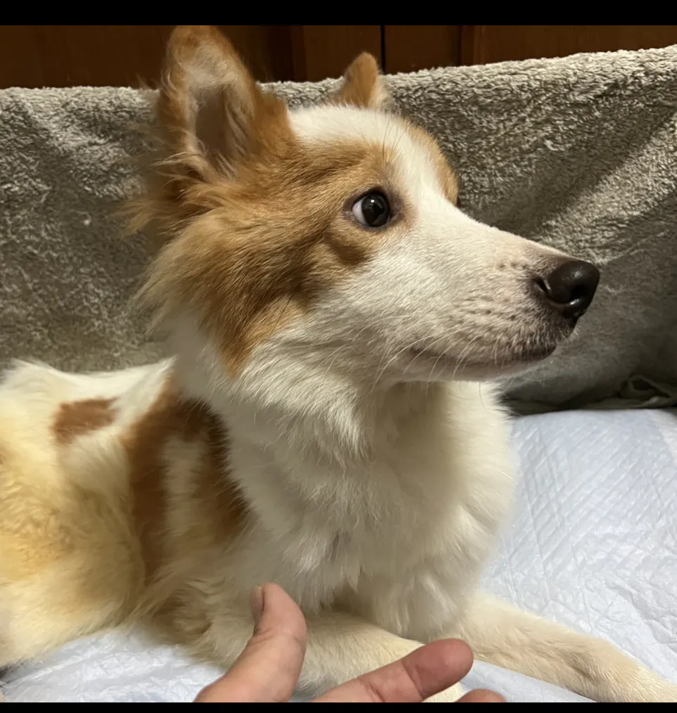 衰弱して足腰が立たない状態で道端にいたところを保護しためめちゃん。