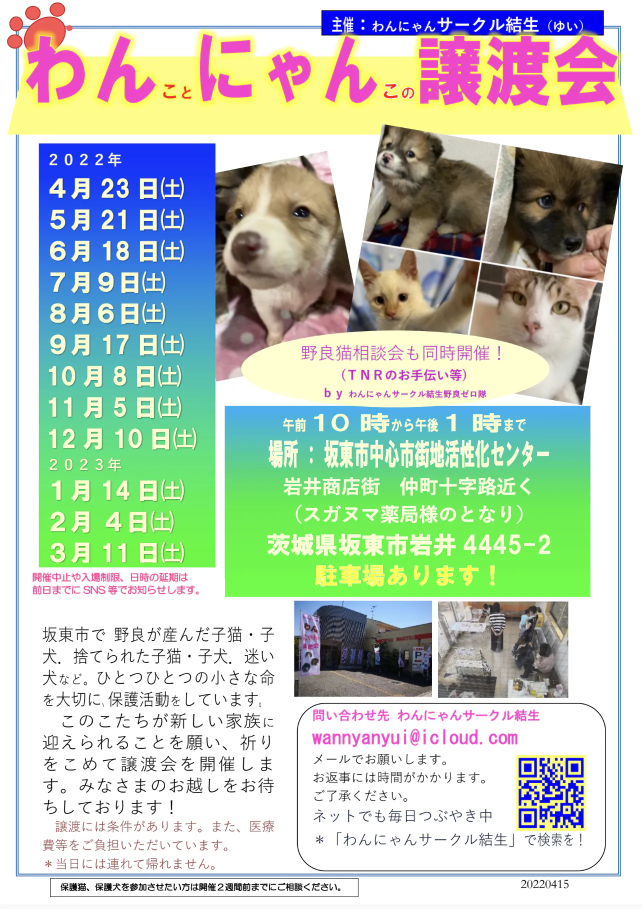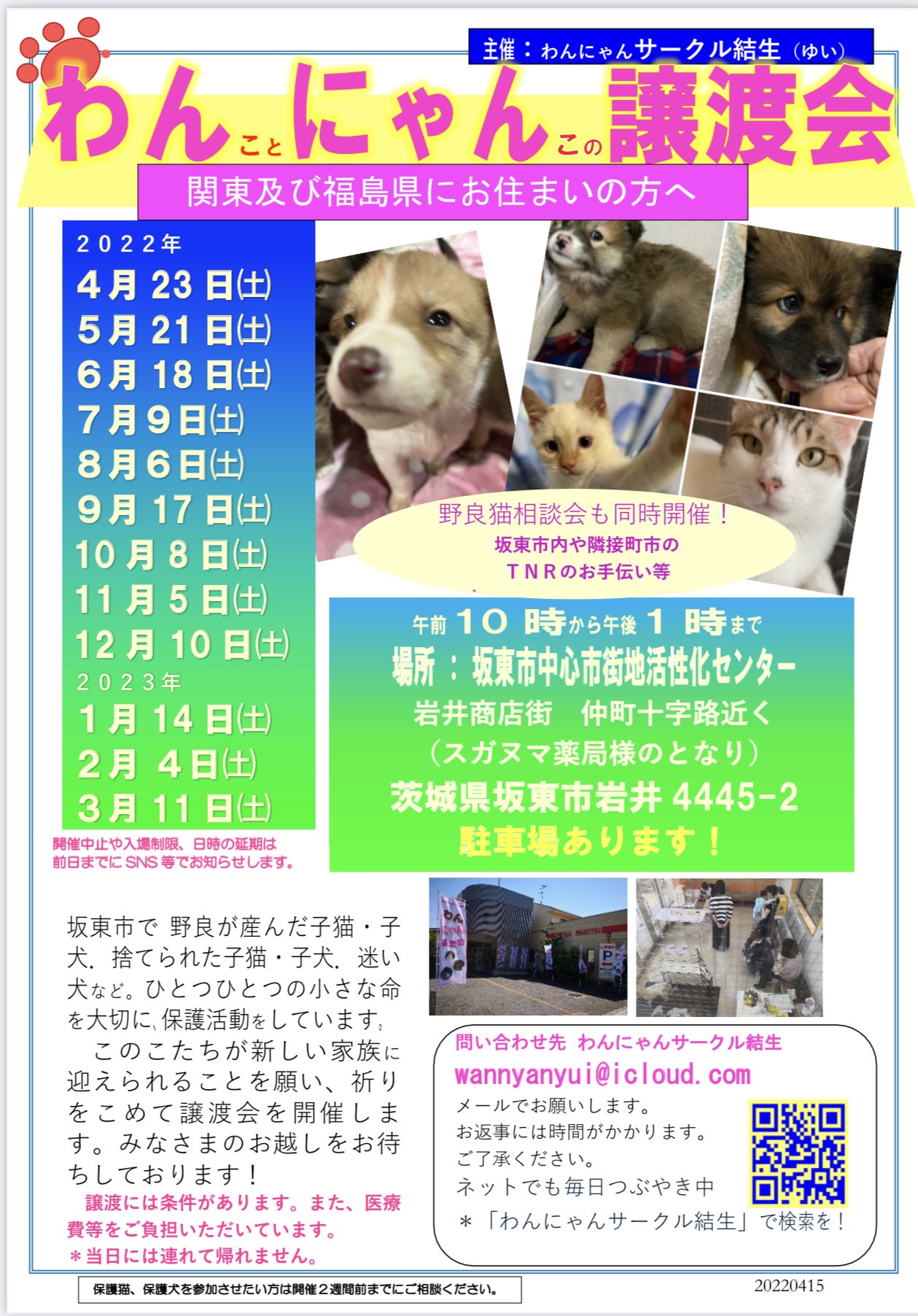 今年度の地元茨城県坂東市での譲渡会の日程が決まりました。