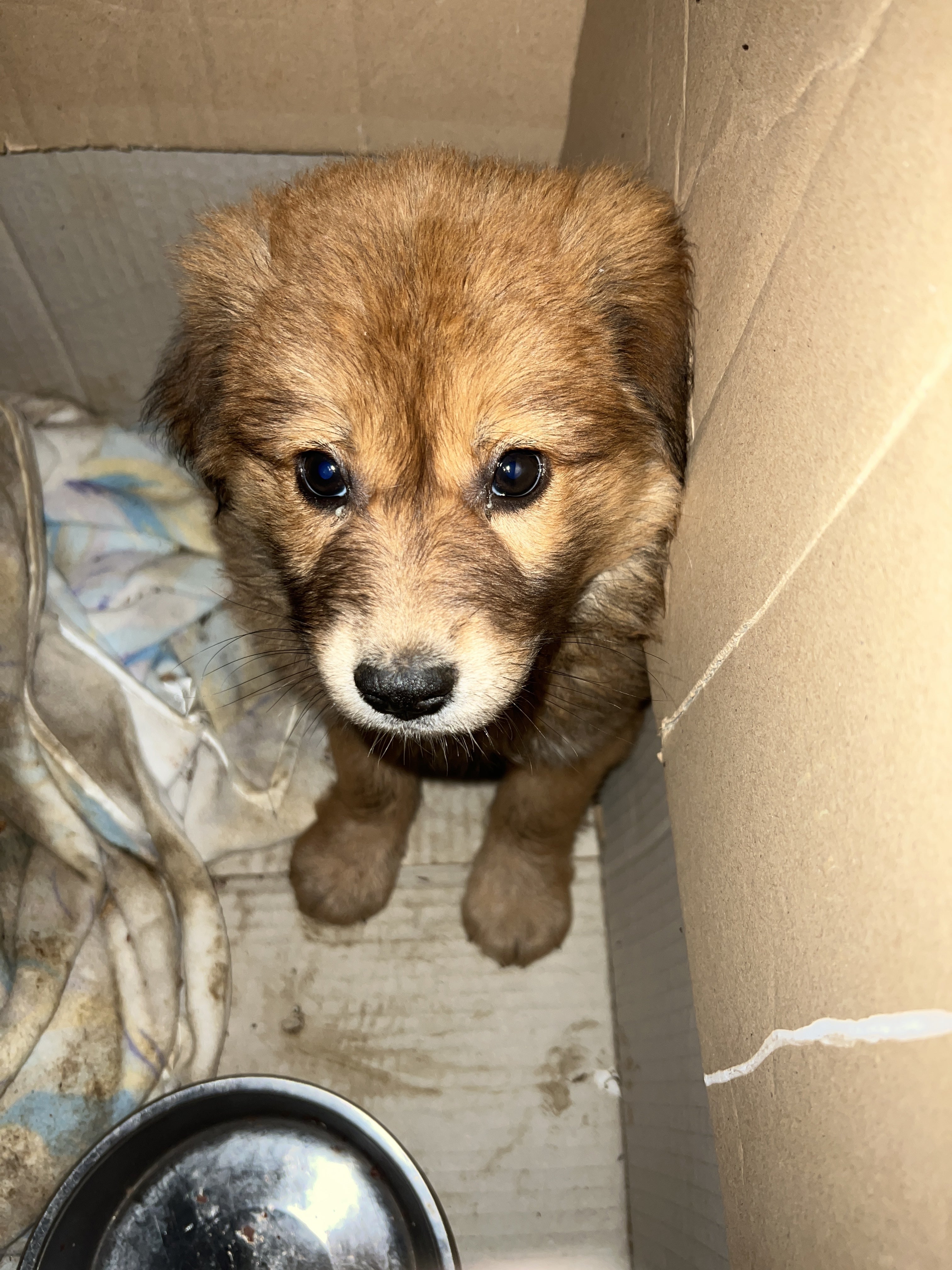 段ボールの中で怯えています。