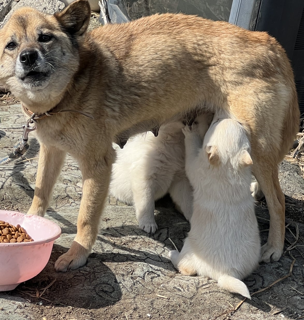 お母さんわんちゃんは授乳もあってガリガリ。