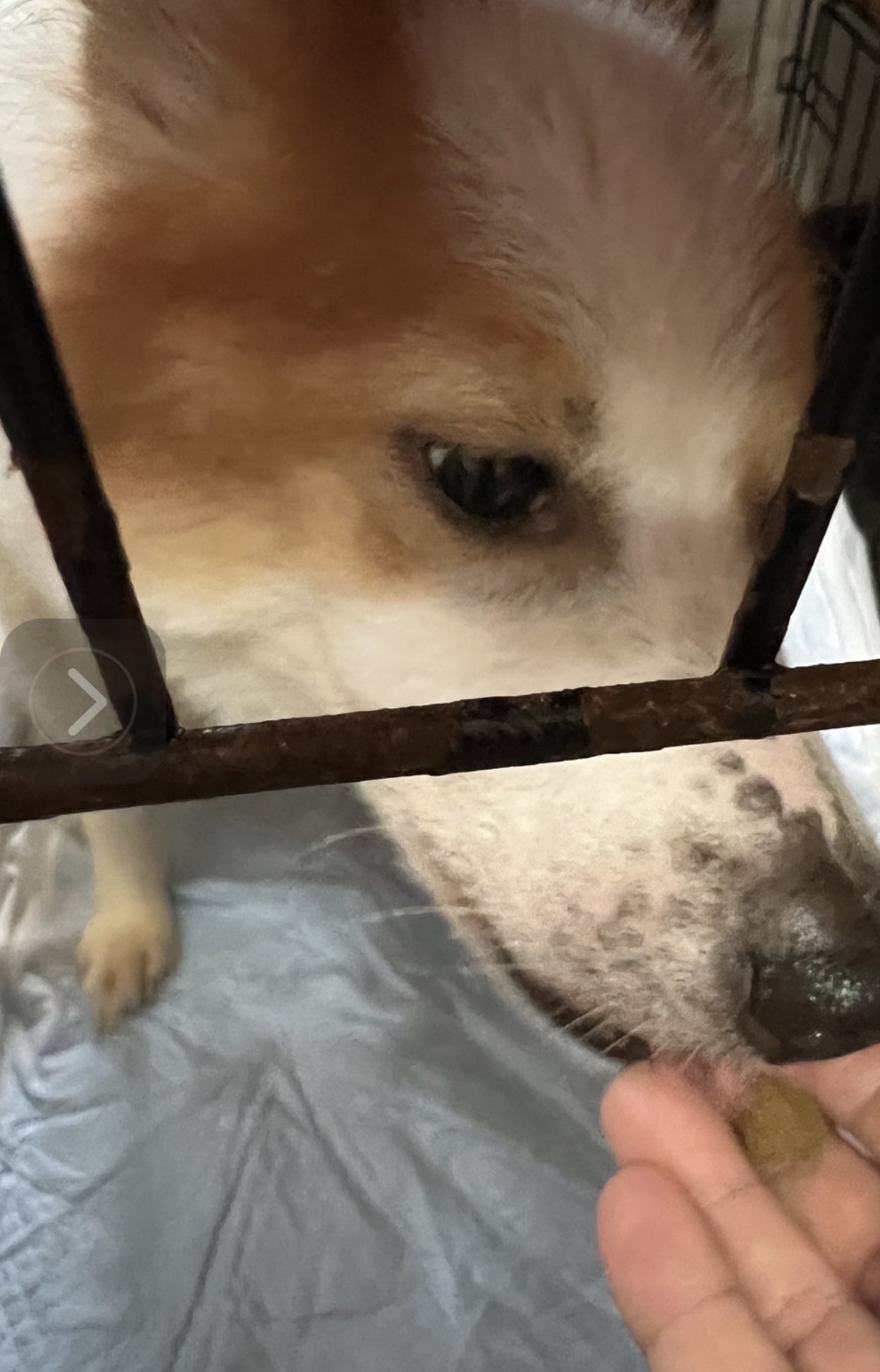 食後、ケージの奥に入って出てきてくれません。