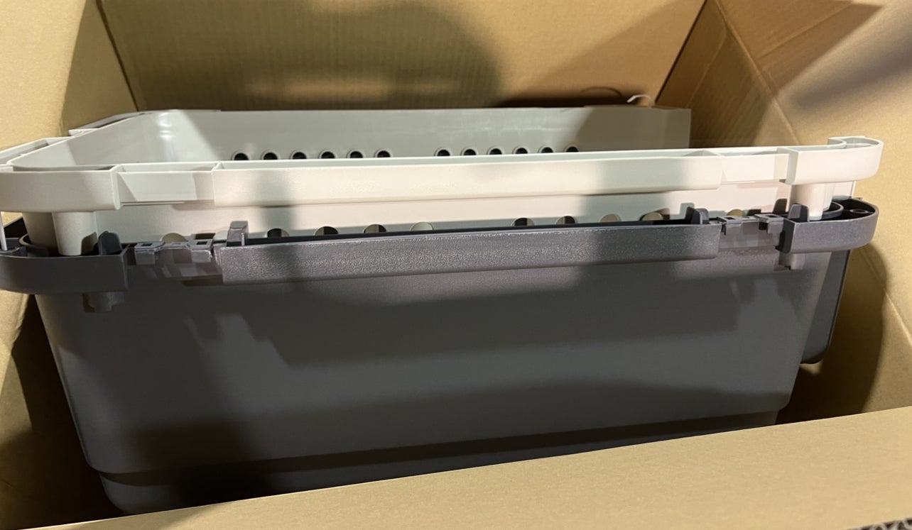 ノミダニ駆虫をするのでちょっとの間せまいけど捕獲箱でごめんね。