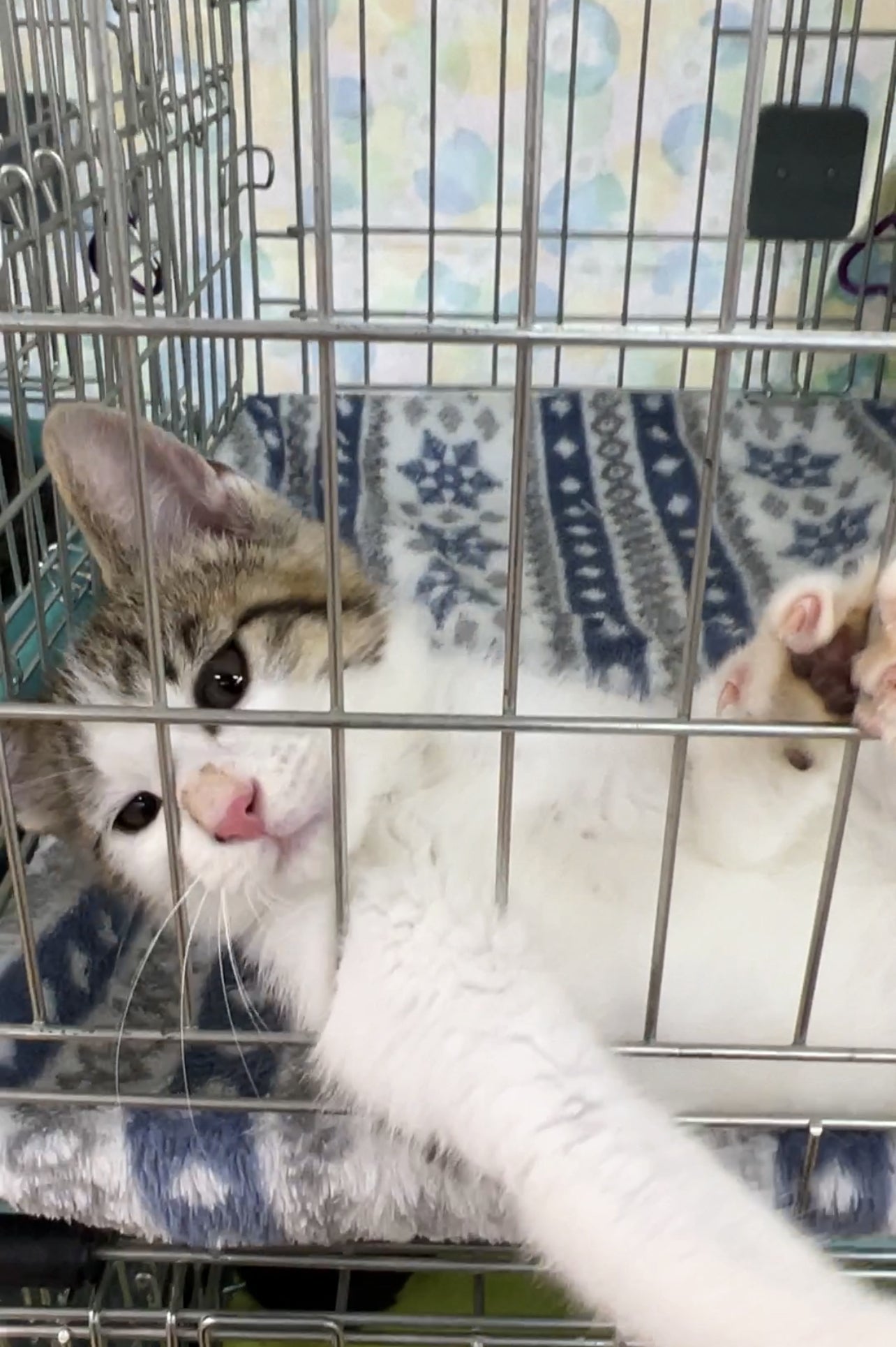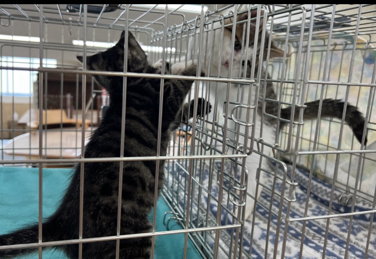 譲渡会でのてらんくんは時々私と猫ぱんちごっこして
