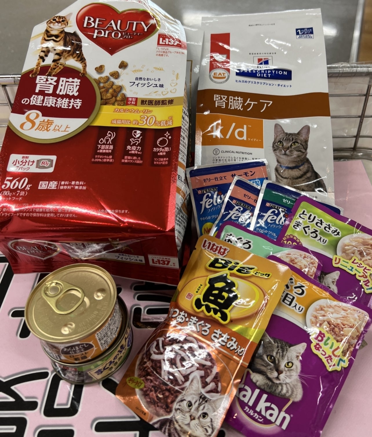 譲渡会場でのご支援コーナーにていただいたフード等を