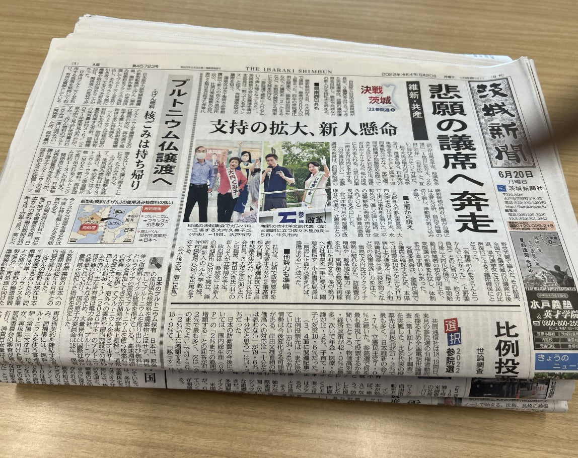 Y様から新聞紙ご支援いただきました。