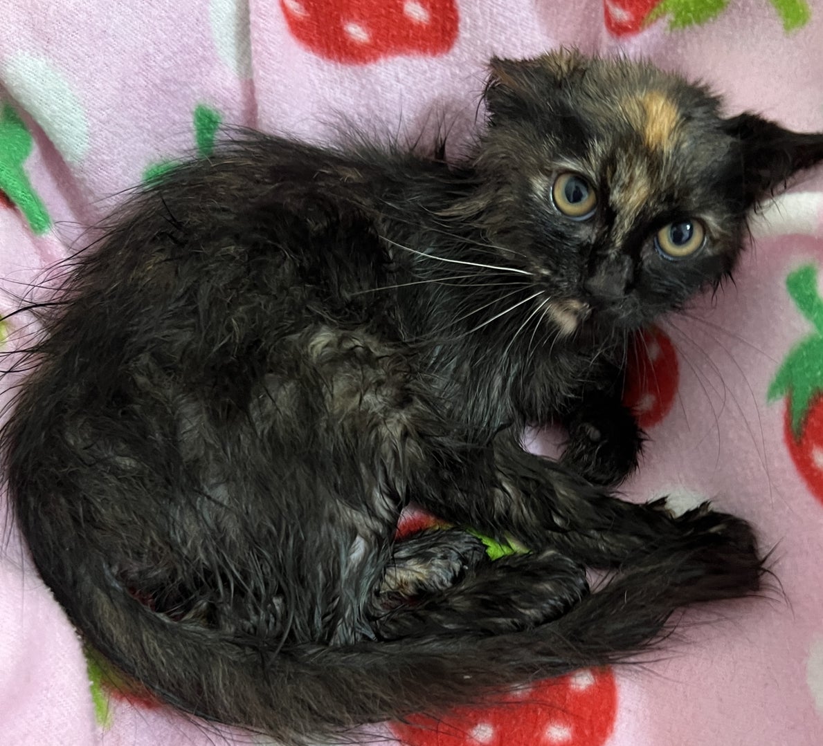 サビネちゃん、汚れていたので濡れタオルで拭いたら