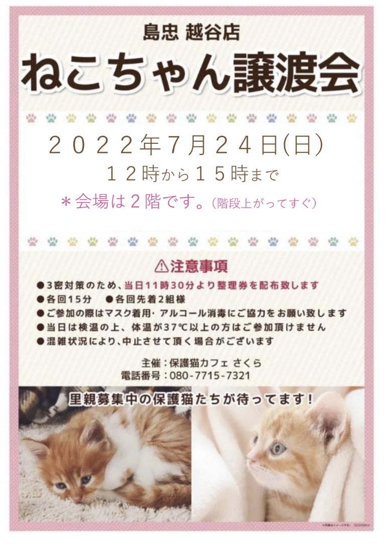 今日の島忠越谷店での譲渡会(保護猫カフェさくら主催)で