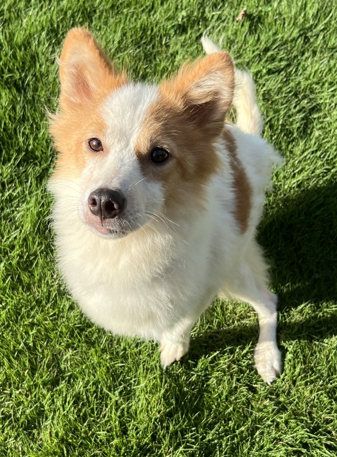 しっぽを振って、おすわりしてくれます。