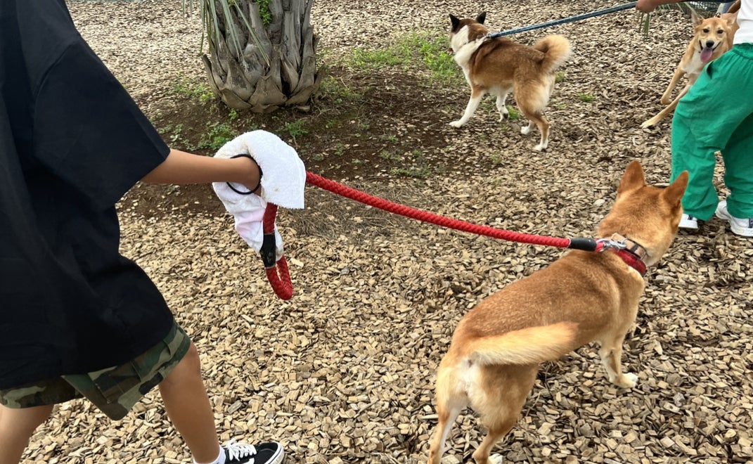 それぞれわんちゃんのリードをお渡しし、お散歩体験していただきました。