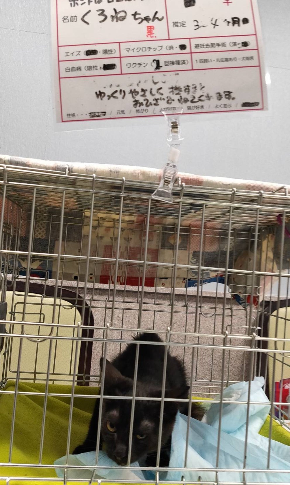 クロネちゃんは行きの車の中で被せていた布が落ちて