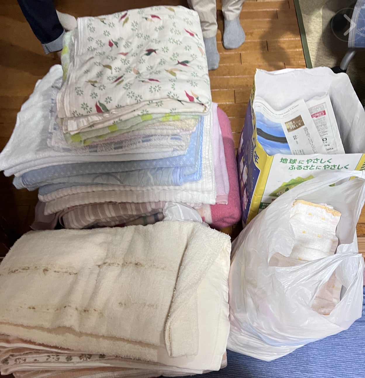 F様からタオル、毛布、新聞紙ご支援いただきました。