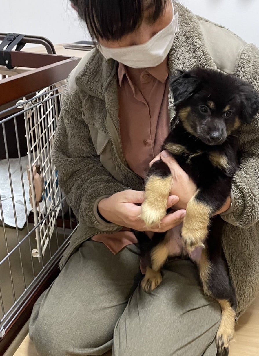 捕獲後1ヶ月に野良犬さんが出産した赤ちゃんのひとり、くにくん。